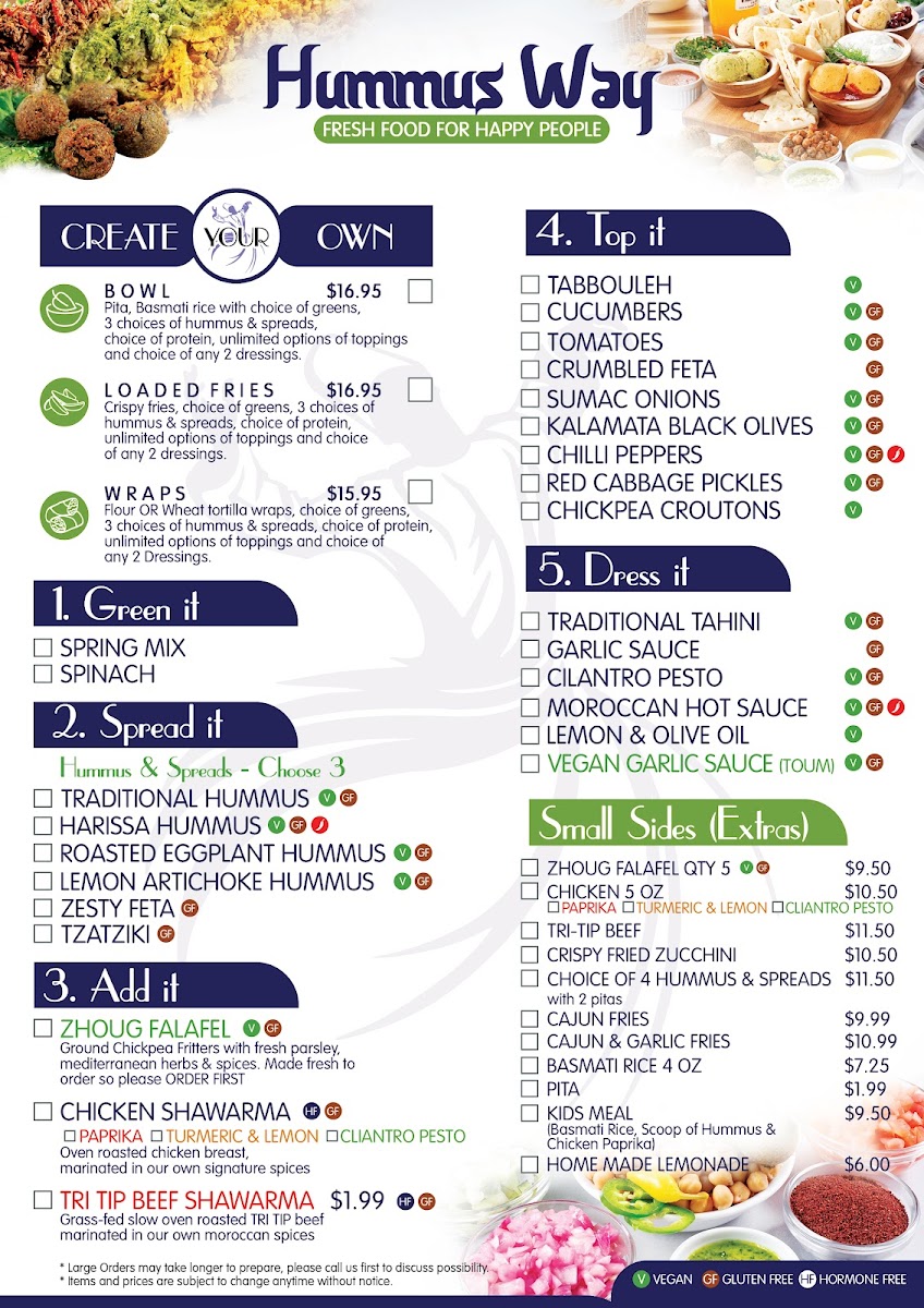At Hummus Way, we celebrate the rich flavors of the Mediterranean and Middle Eastern cuisine, offering a vibrant dining experience in Orange, CA. Our passion is evident in every dish, from our creamy, house-made hummus to our flavorful shawarma options. We cater to all dietary preferences, featuring an array of vegan and vegetarian choices, and promote sustainability with compostable packaging. The casual atmosphere is perfect for groups, whether dining in or taking out. With outdoor seating and a dedicated happy hour, Hummus Way stands out as a welcoming haven for food lovers seeking authentic Halal cuisine. Come savor the journey!